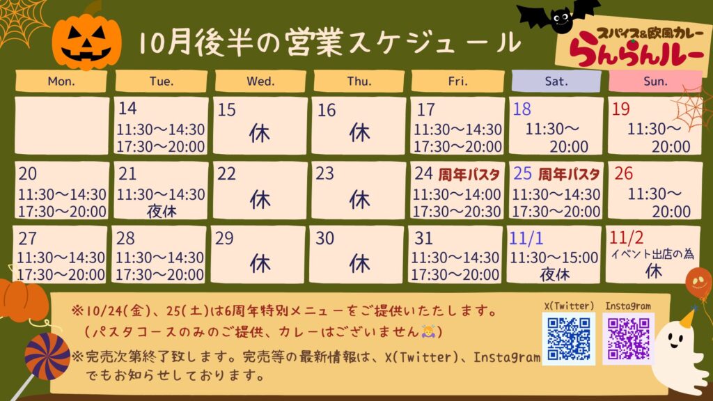 10月後半のスケジュールです!