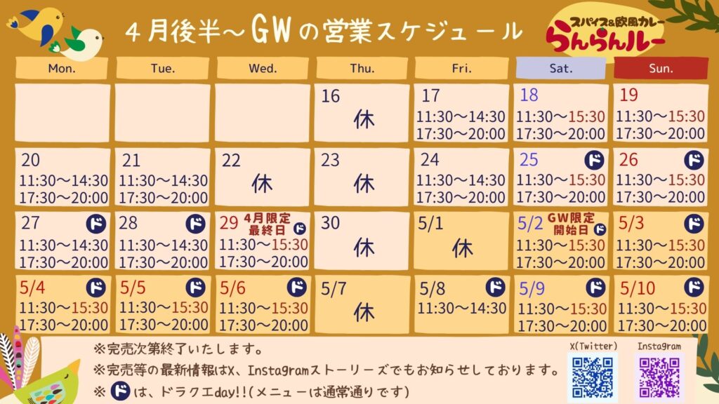 ※GW限定カレーは【5/2(土)~5/19(火)予定】