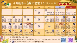 らんらんルーのお知らせ 3月前半の営業カレンダー