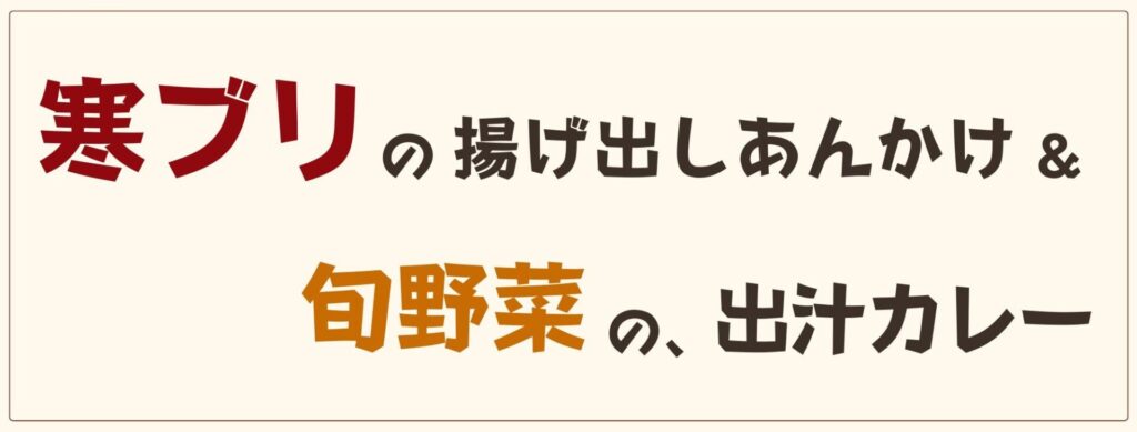 「寒ブリの揚げ出し2倍!&旬野菜の、出汁カレー」…1600