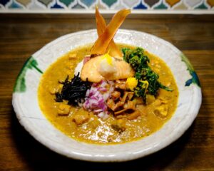 冬に美味しさが爆発する寒ブリを、まずは丁寧に下処理。そして粗めにカットして、かつお出汁と合わせ「The 日本の出汁カレー」に仕上げました。