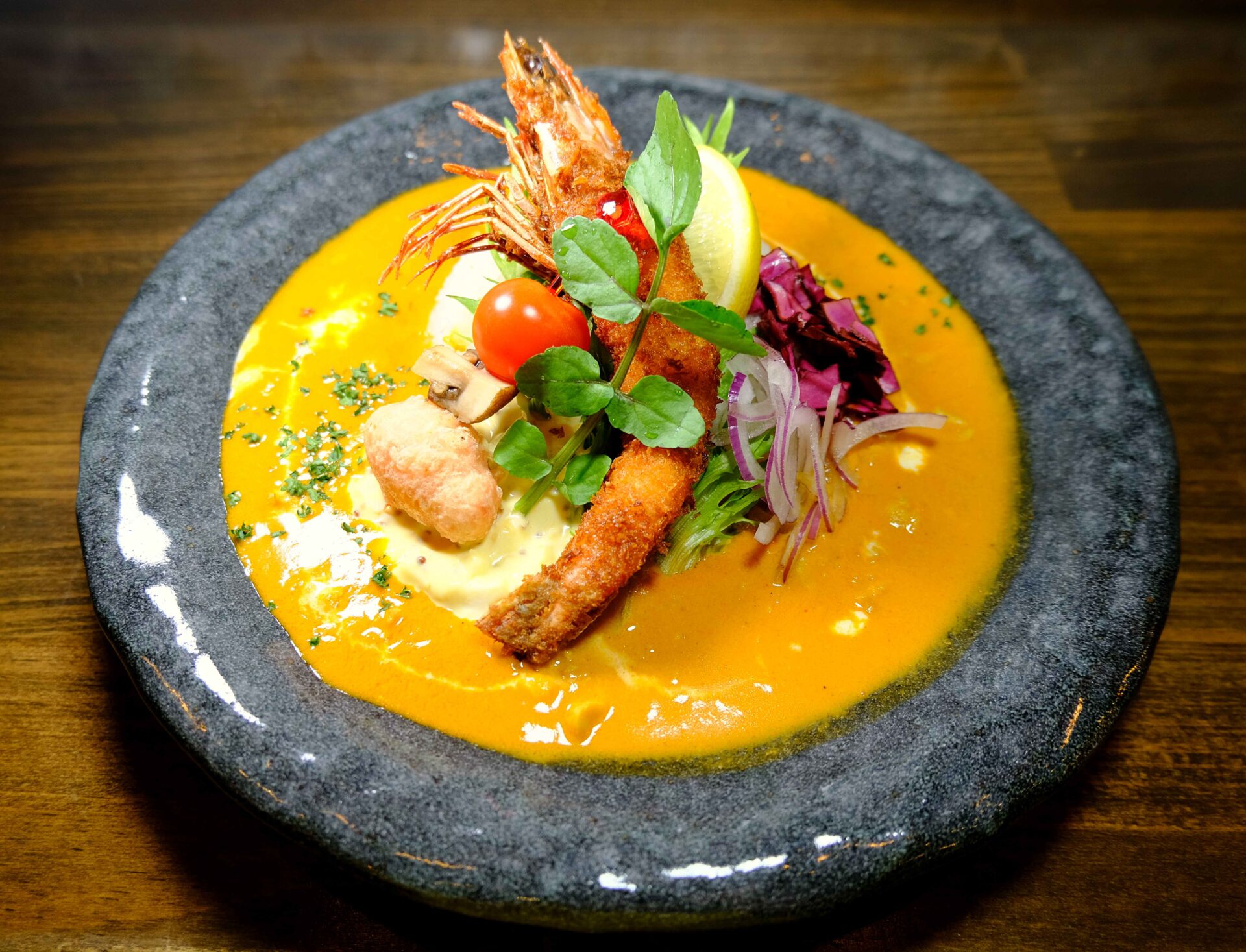 過去には、豆乳ベースやココナッツベースなど様々な海老カレーが登場しましたが、これまでで一番人気のスタイルでご提供いたします!