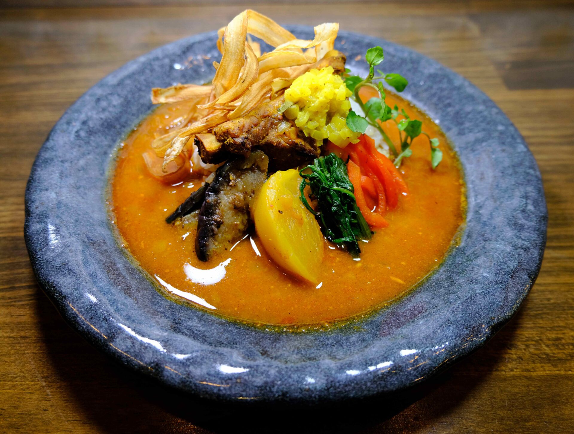 モルディブフィッシュ×日本の鰹出汁を掛け合わせてカレーに。そして、スリランカ色のある副菜を合わせました。